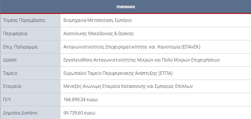 menexes – Μία οικογενειακή επιχείρηση κατασκευής και εμπορίας επίπλων αναπτύσσεται με τη συνδρομή του ΕΠΑνΕΚ